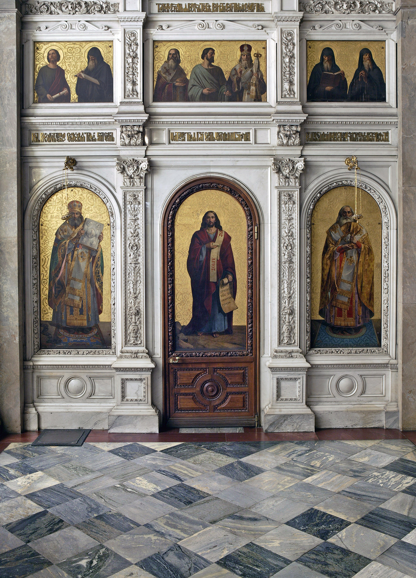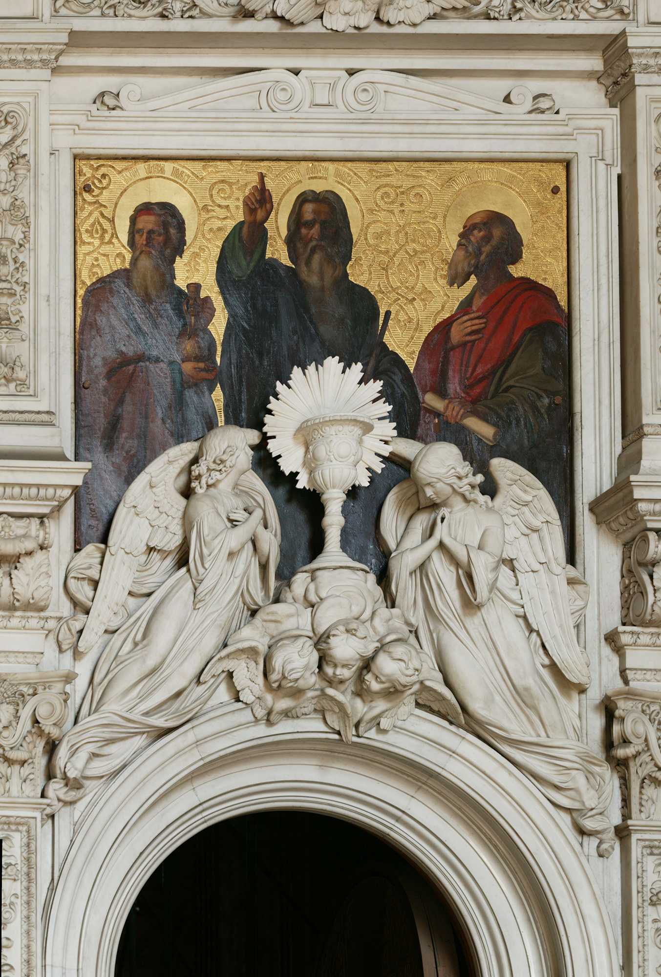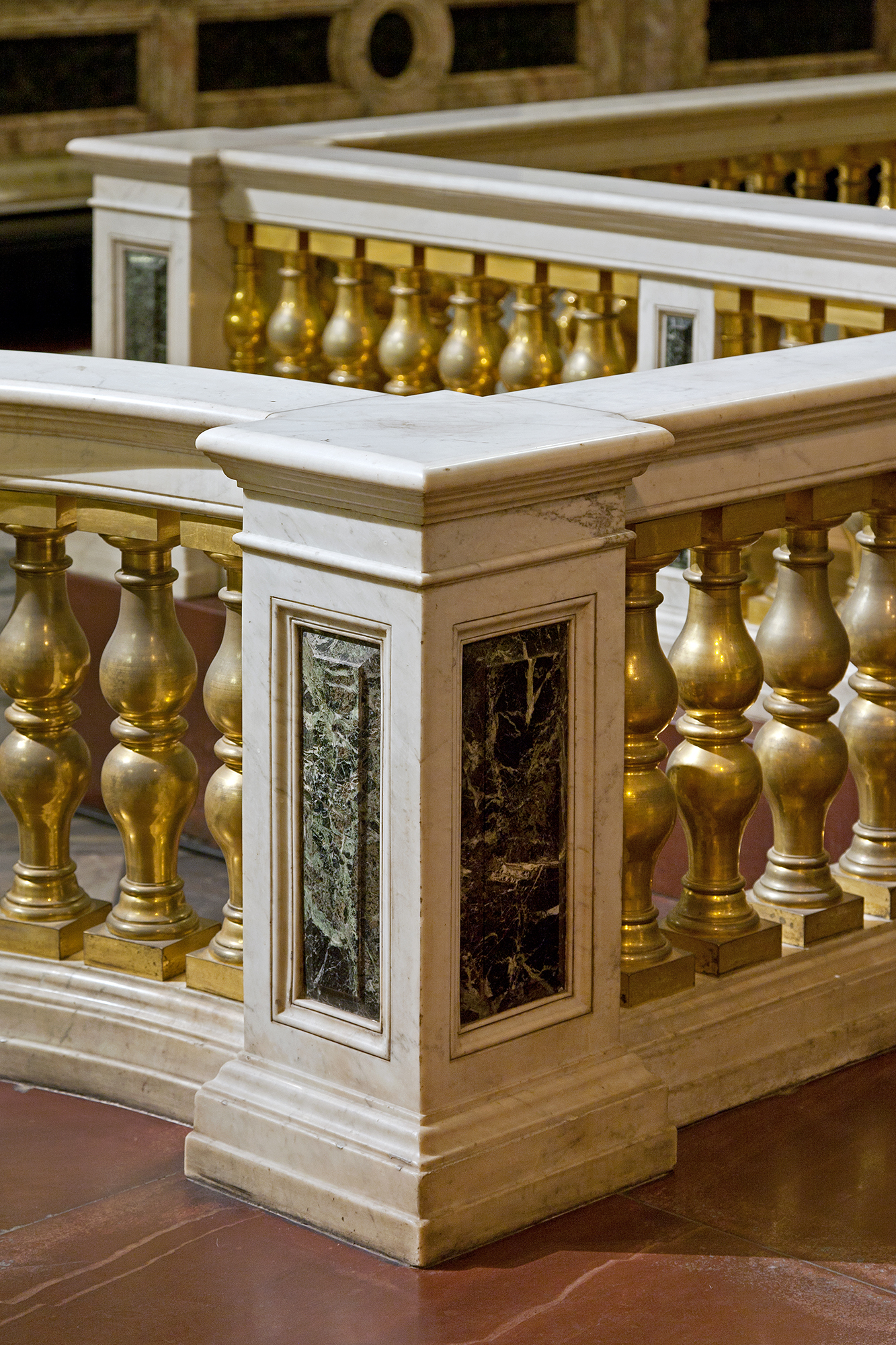 Престолы, жертвенники и пьедестал под дарохранительницу в главный алтарь также были выполнены из каррарского мрамора.