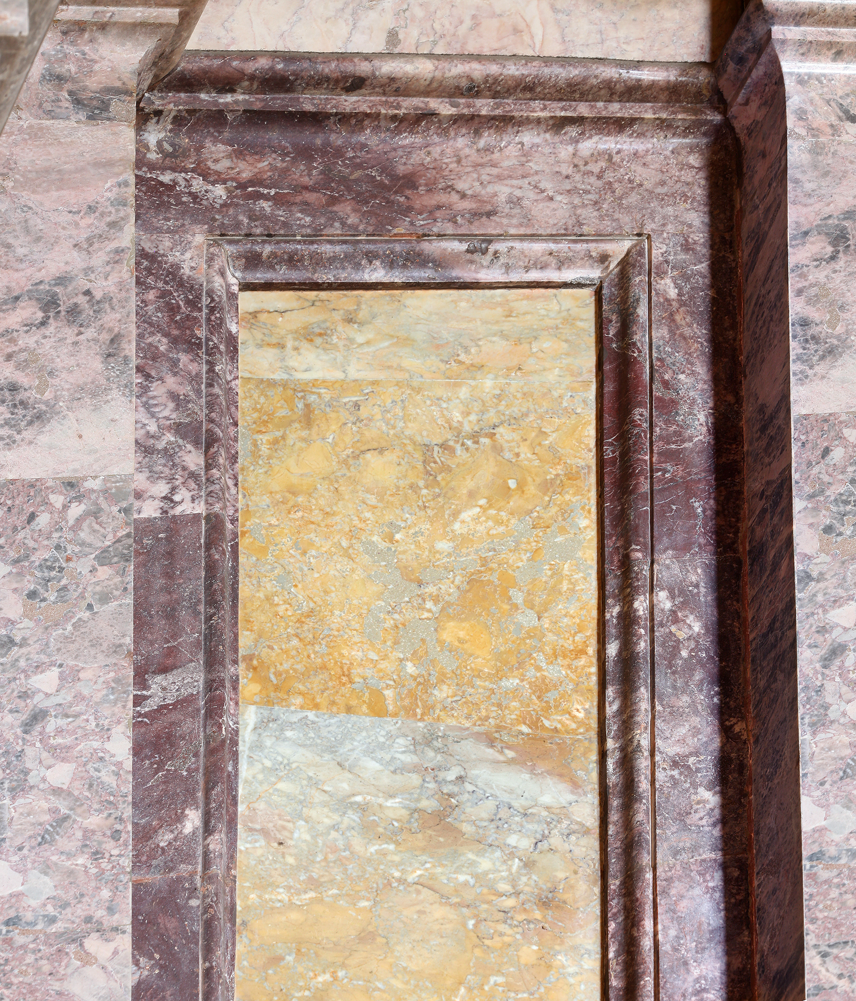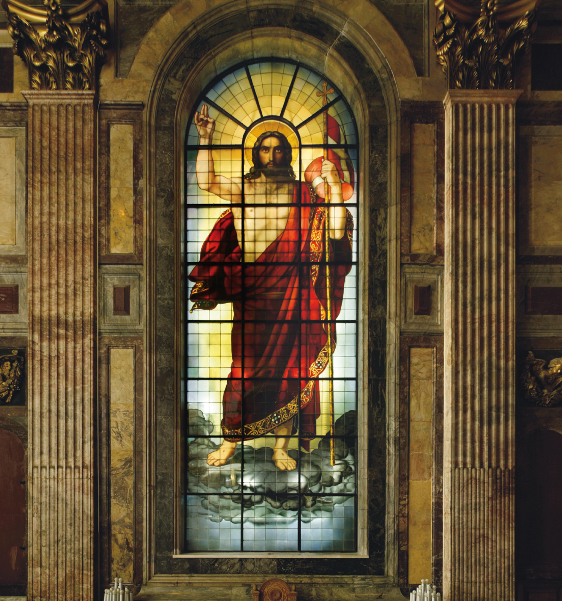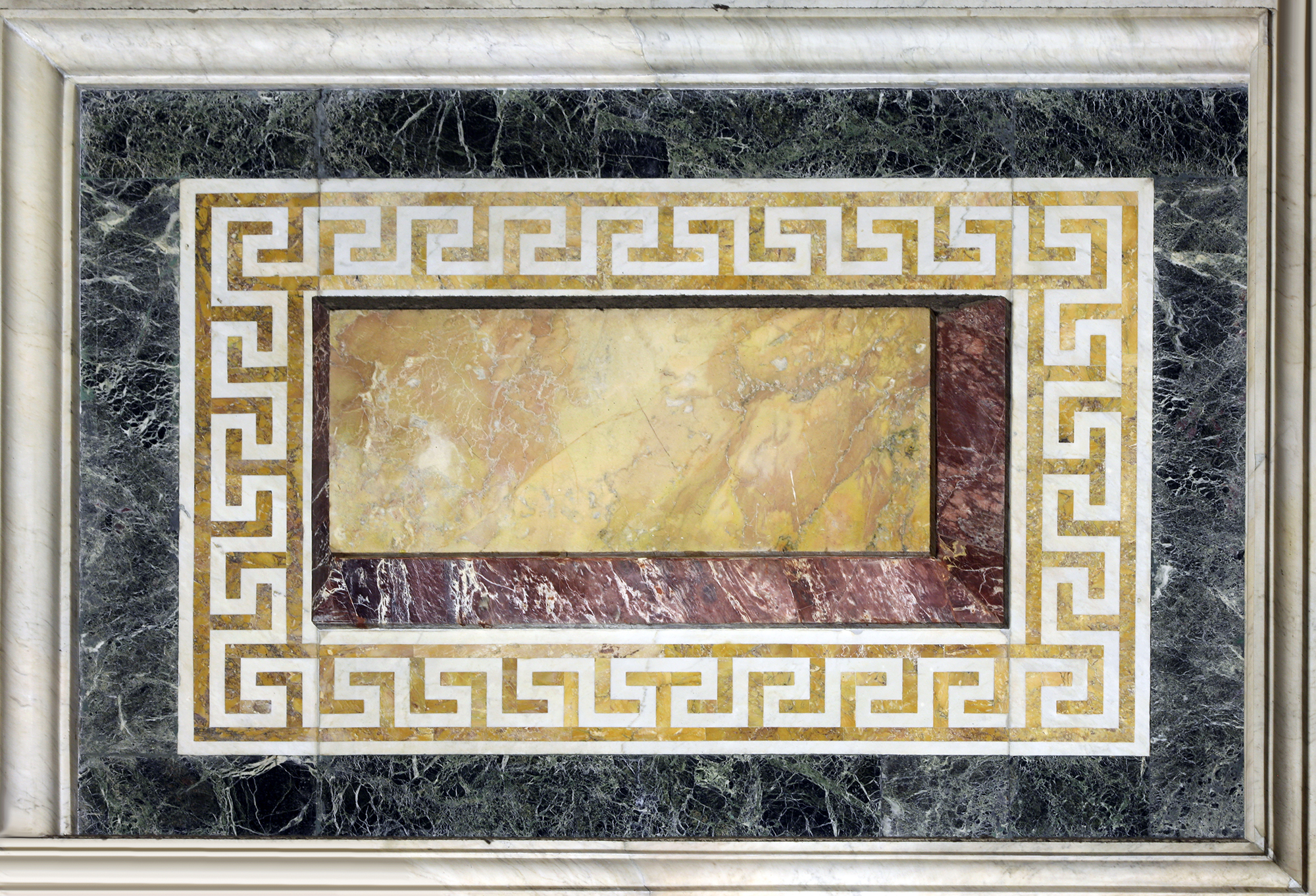 Желтый сиенский мрамор в виде крупных прямоугольных профилированных плит в обрамлении зеленого генуэзского мрамора украшает четыре подкупольных пилона, оживляя своим теплым тоном интерьер.